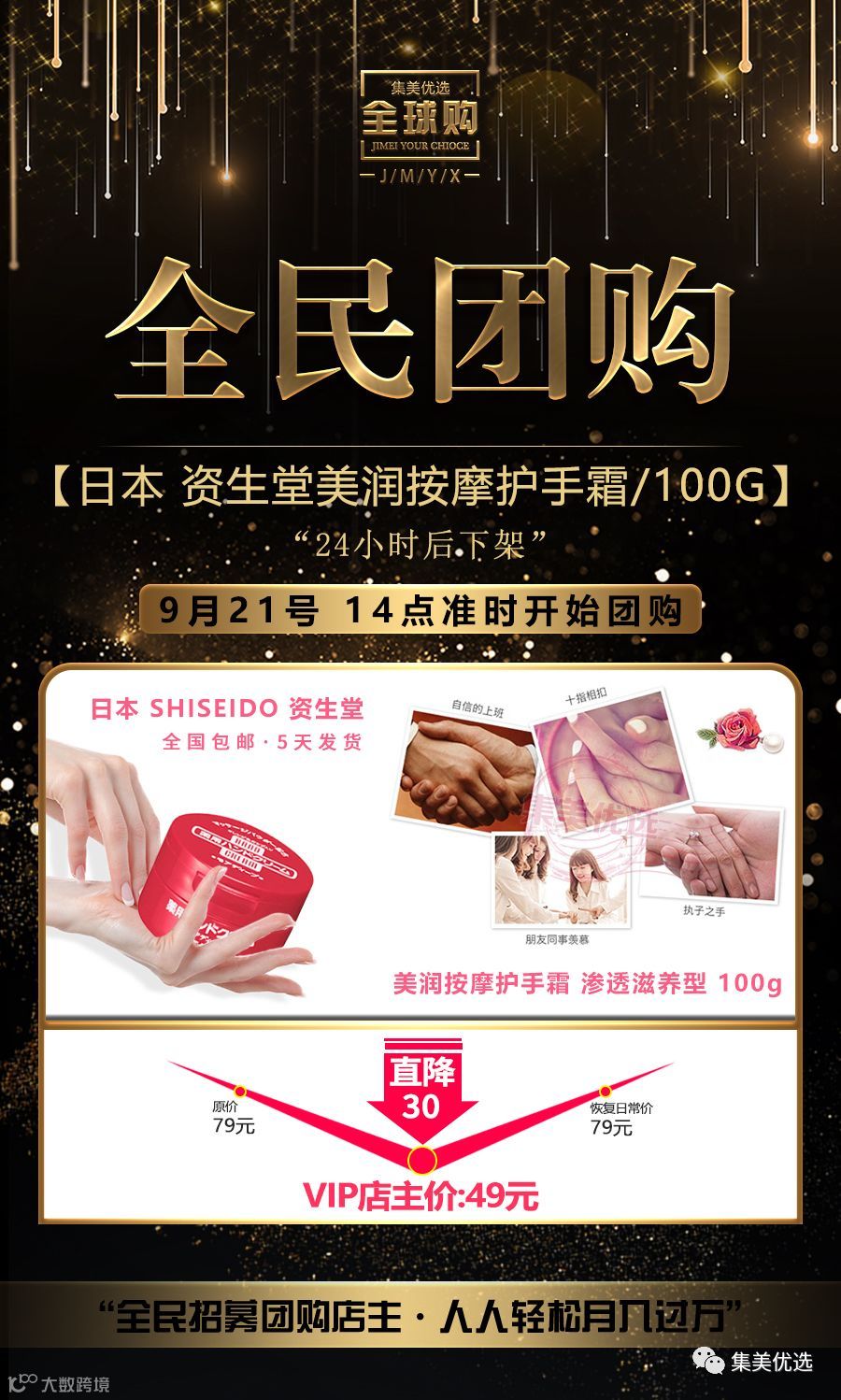 【福利团购】 日本 SHISEIDO 资生堂美润按摩护手霜 渗透滋养型 100g