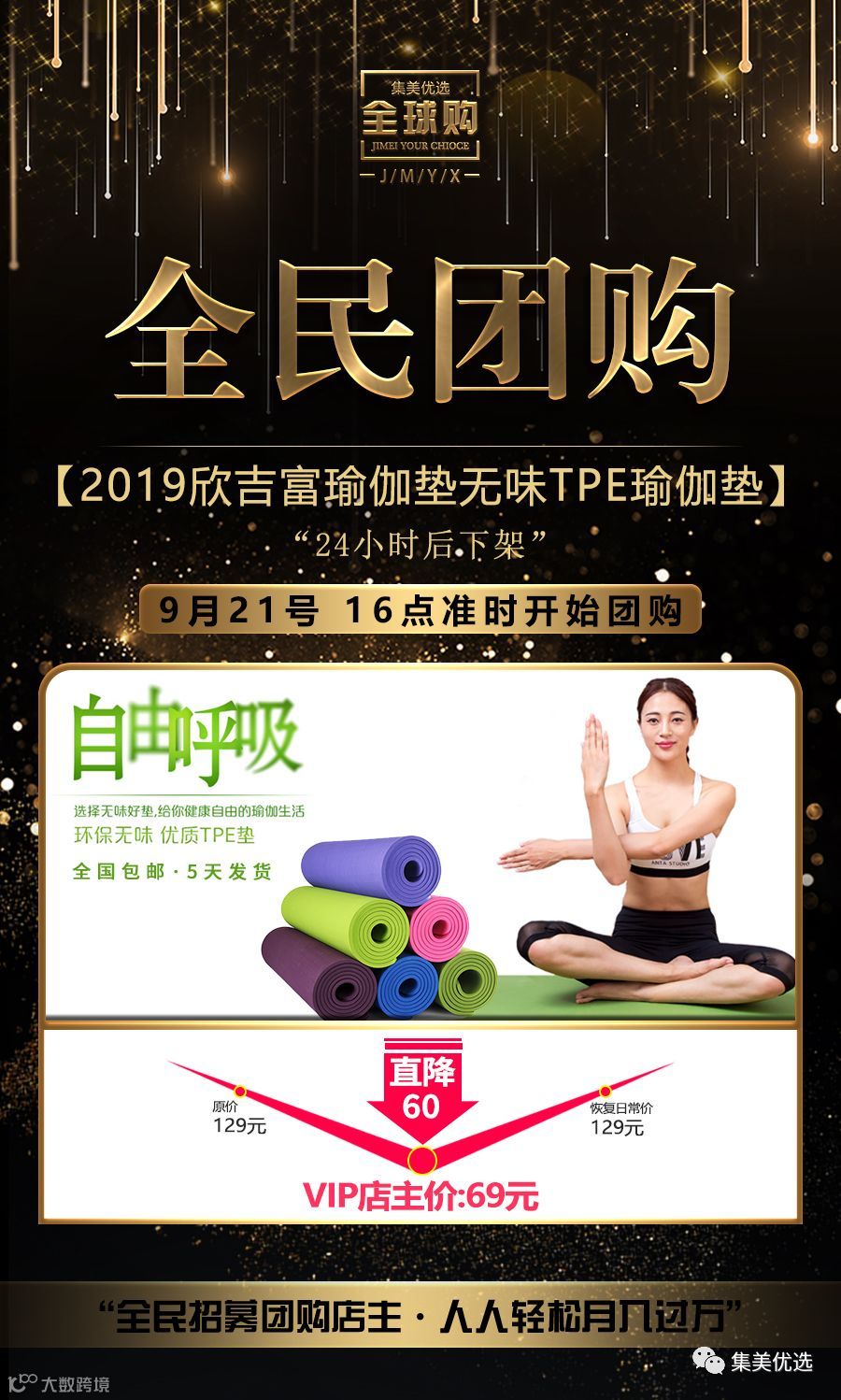 【福利团购】【耐克瑜伽垫代工厂】2019欣吉富瑜伽垫无味tpe瑜伽垫初学者加厚加宽加长防滑三件套女健身瑜珈垫