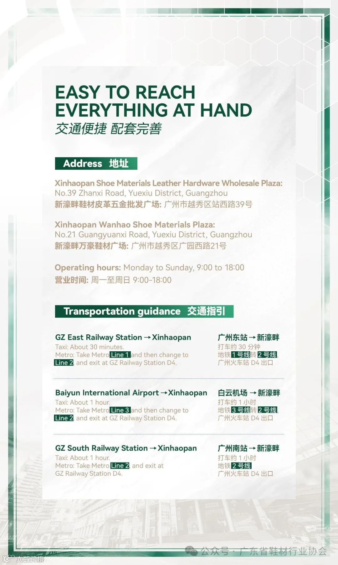地址:广州市越秀区广园西路21号万豪鞋材广场六楼1616室