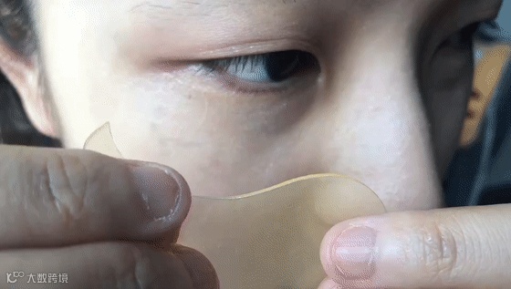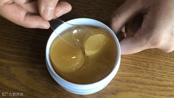 用赠送的小勺拿起一片,果冻状的眼膜就出来啦,每一片眼膜都含有珍贵的“黄金”成分,不含防腐剂,贴在脸上丝毫不用担心。