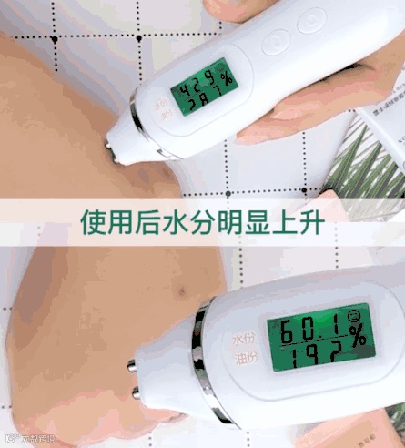 肌肤补水的状态完全肉眼可见,为了让大家更加直观的看到安瓶的补水效果,馆长用水分测试仪测试肌肤,可以看到水分上升的非常明显。