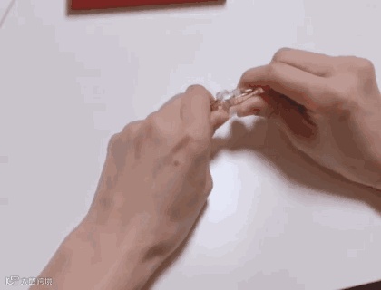 取出一直精华瓶和帽盖,将帽盖套在精华瓶上,手握住用力,掰断顶端瓶盖。
