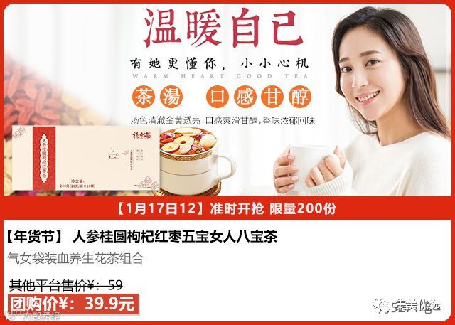 选用纯天然原料人参桂圆枸杞红枣,民间传统方法精心配料而成。富含多种营养成分,口感清香纯正。未经人为加工,在严格遵守食品卫生标准下操作监控处理而成。其味醇香甘甜无比,实属中华茶中珍品,深受广大顾客的青睐!
