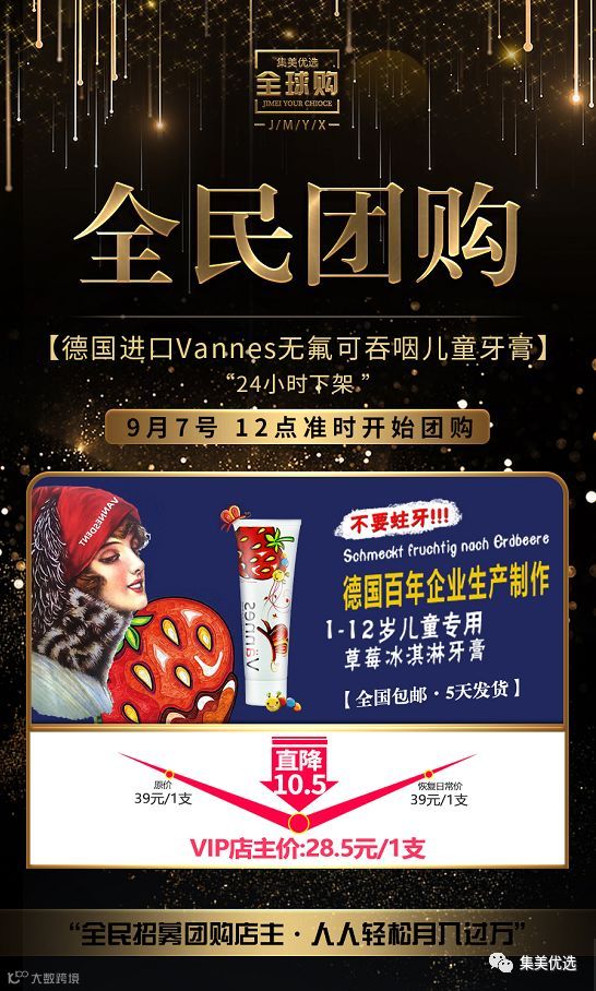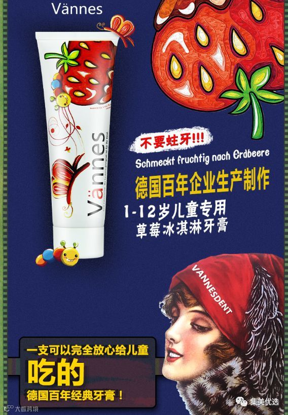 【福利团购】德国进口Vannes儿童牙膏1-12岁 草莓冰激凌味牙膏无氟可吞咽