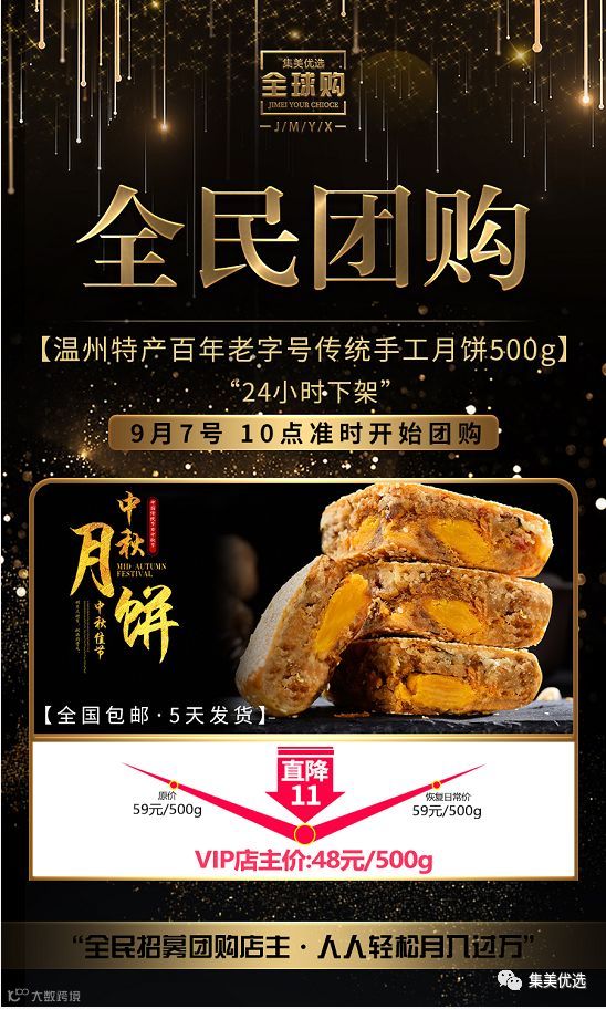 【福利团购】温州特产月饼百年老字号传统手工自制大蛋黄鲜肉馅中秋福利团购500g