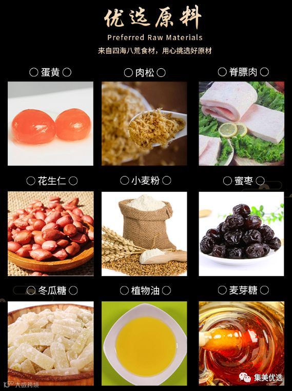 采用传统的古早制作工艺,馅心有鸭蛋、猪膘肉、桂圆肉、腰果、冬瓜条、芝麻、花生仁、蜜枣,烘烤后的月饼,外皮酥脆,内馅顺滑,吃起来肥而不腻,芝香扑鼻。
