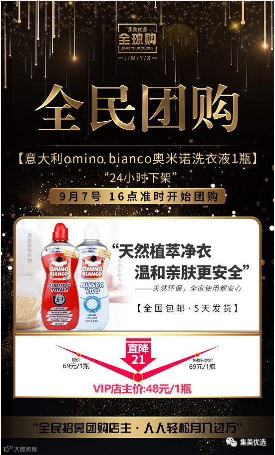 【福利团购】意大利omino bianco奥米诺洗衣液超强白色衣服去污渍剂去黄漂白剂