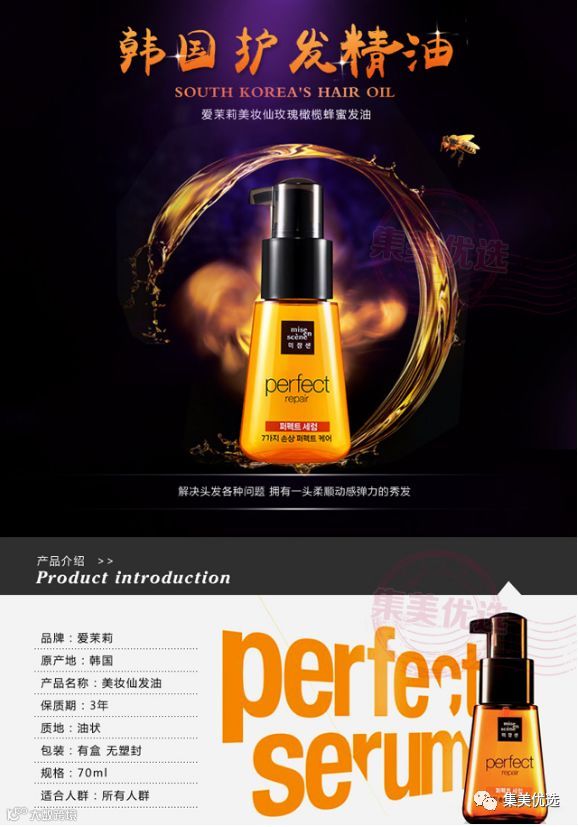 这款是爱茉莉护发精油的经典款,含摩洛哥阿甘油,玫瑰花纯露,蜂胶等成分,是针对干性,受损发质的日常护理。它可以迅速进入发芯深处,促进毛鳞片生长,修复开叉,深度滋养头发,让头发自然顺垂。