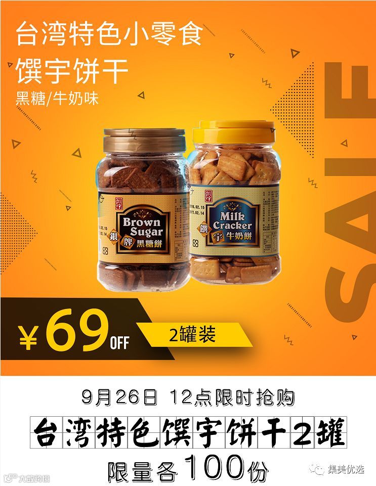 【福利团购】台湾特色小零食品馔宇黑糖牛奶味饼干咸味 旅游办公室零食嘴 2罐