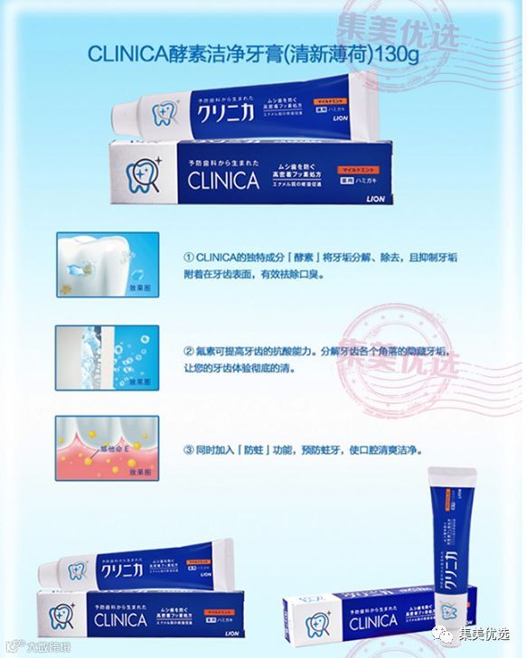 【福利团购】 日本狮王CLINICA 酵素洁净牙膏(清新薄荷)130g*2支
