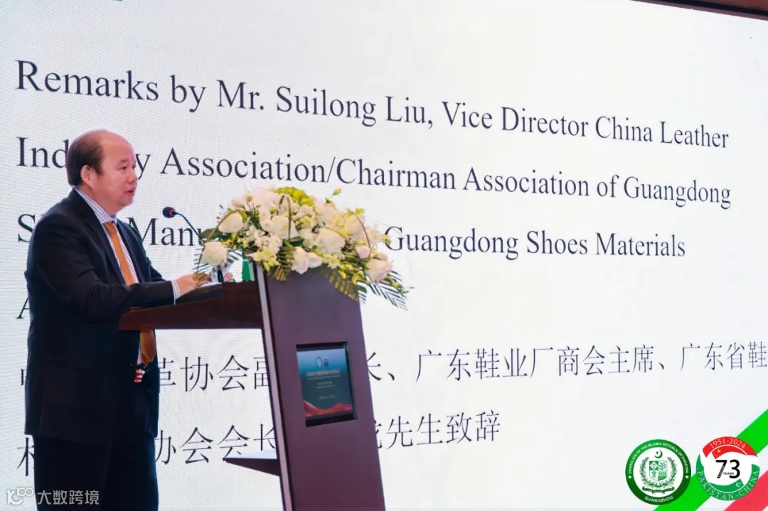 ▲中国皮革协会副理事长、广东鞋业厂商会主席、广东省鞋材行业协会会长刘穗龙先生致辞