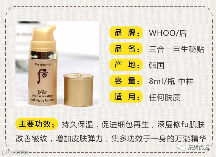 导读:知道最近被众多MM热捧新一代美妆神器是什么吗?当然就是本店家的Whoo后自生密贴秘贴精华液中小样8ml焕然修