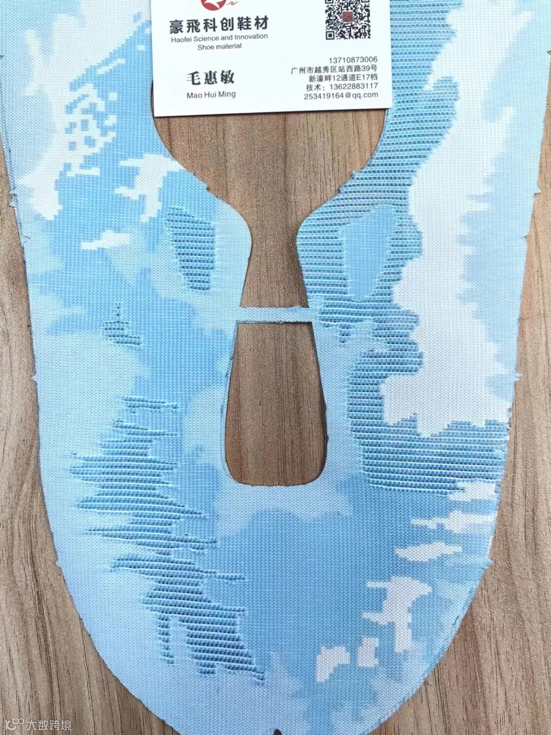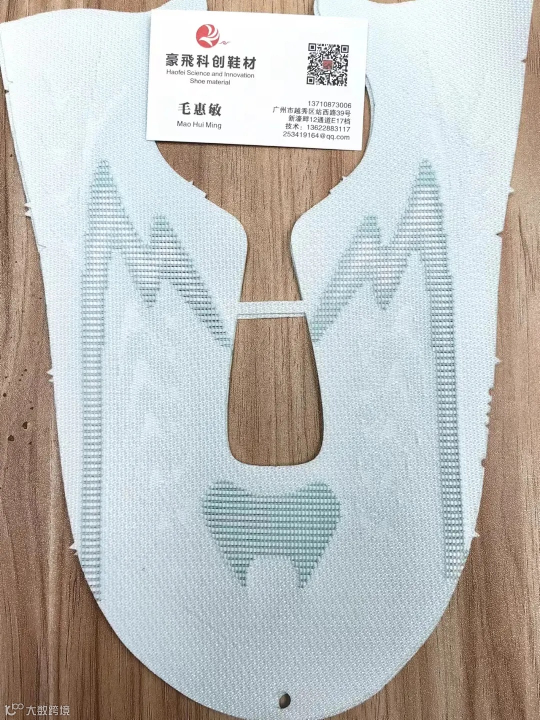 豪飞鞋材公司是一家专注于飞织鞋面设计和销售的企业,我们的产品以特殊面料为主,为消费者提供舒适、时尚的穿着体验。公司拥有一支专业的设计团队,他们精通飞织工艺,能够根据市场需求和消费者喜好,设计出各种独特、新颖的鞋面样式。