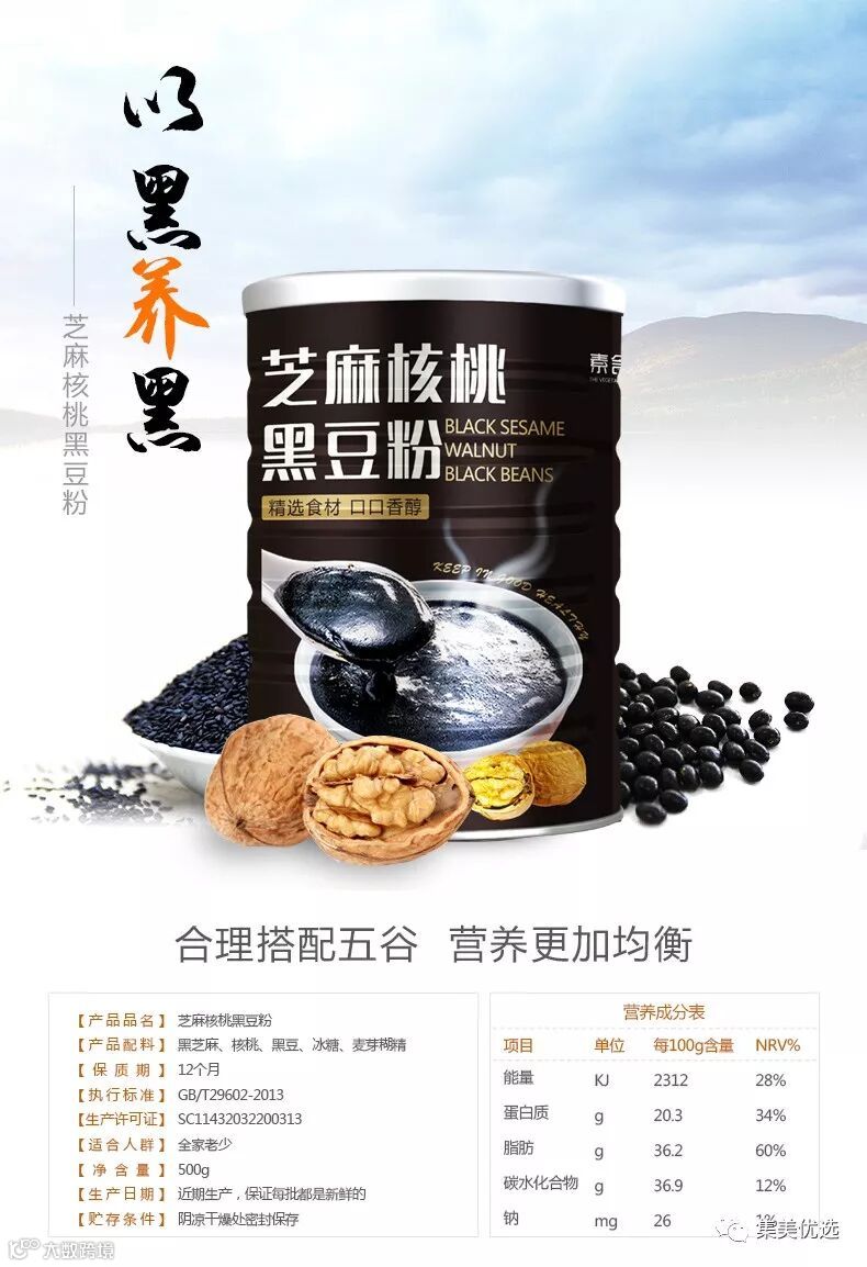 以核桃仁、黑芝麻、黑豆为主的组合,构成了黑营养的铁三角。