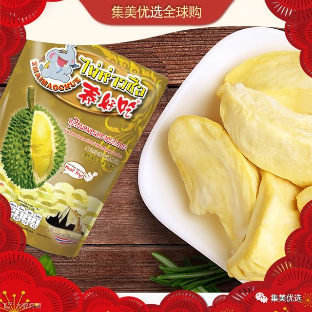 泰好吃丨榴莲干,时刻"榴莲”忘返 !精选品质上乘、肉质鲜美的榴莲并采用-45℃急速冷冻系统瞬间急冻,再真空干燥,完整的保持住榴莲香甜原味及营养价值。百分之百榴莲果肉制成,绝无任何添加物,含丰富蛋白质、维生素,高纤维、零胆固醇,现代都市人理想的绿色食品!