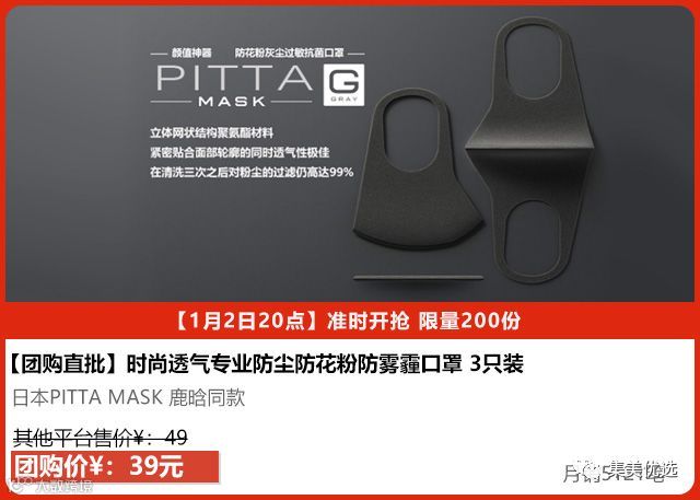 日本PITTA MASK 时尚透气专业防花粉防雾霾口罩,鹿晗同款!PITTA MASK的3D立体剪裁结构,贴合又修脸型,戴上一下变小脸。简约的纯色十分百搭,任何风格都能完美MATCH。比布口罩更透气,四层高效防护,滤除空气污染,无缝压边,超强弹力带,可塑鼻条,尽享呼吸健康!