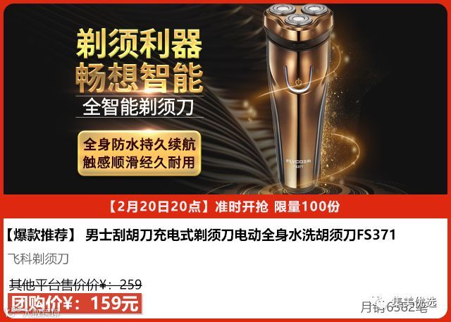 大品牌飞科剃须刀FS371,智能三刀头浮动贴面系统