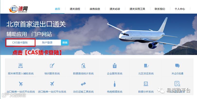 ① 登录易速3.0门户网站(网址:http://www.ethro.net/),点击【CAS插卡登陆】,如下图所示。