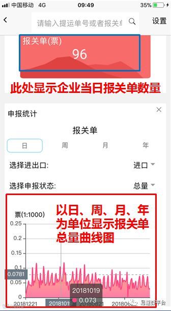 “大数据统计”功能让你“一机在手”便可轻松获取本企业当天实时的报关单申报数量及申报详情。