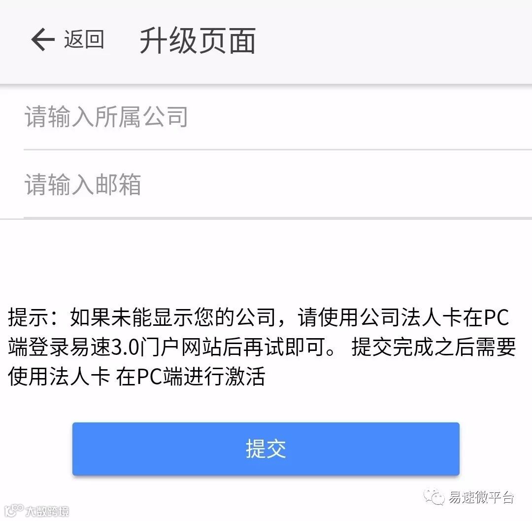 【温馨提示】如下拉菜单中,未能显示您的公司,请使用公司法人卡在PC端登录易速3.0门户网站(网址:http://www.ethro.net/)后,再试即可。