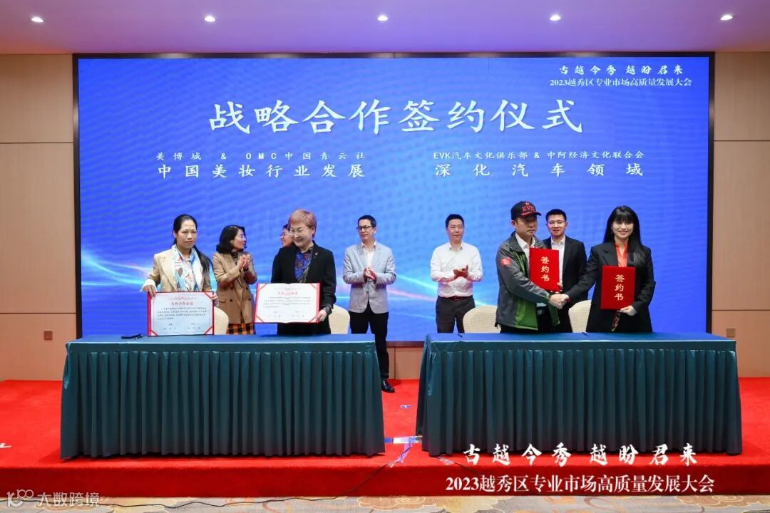 活动现场,我会会长单位-新濠畔集团与捌苙社(广州)文化创意发展有限公司、美博城与OMC中国青云社、广东伊伟科汽车文化俱乐部与中阿经济文化联合会等签署了战略合作协议,强强协作,共同为专业市场增效提质。