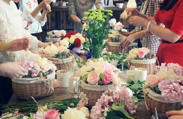 (注:插花中选择简单、朴素、造型简单大方的花器。)