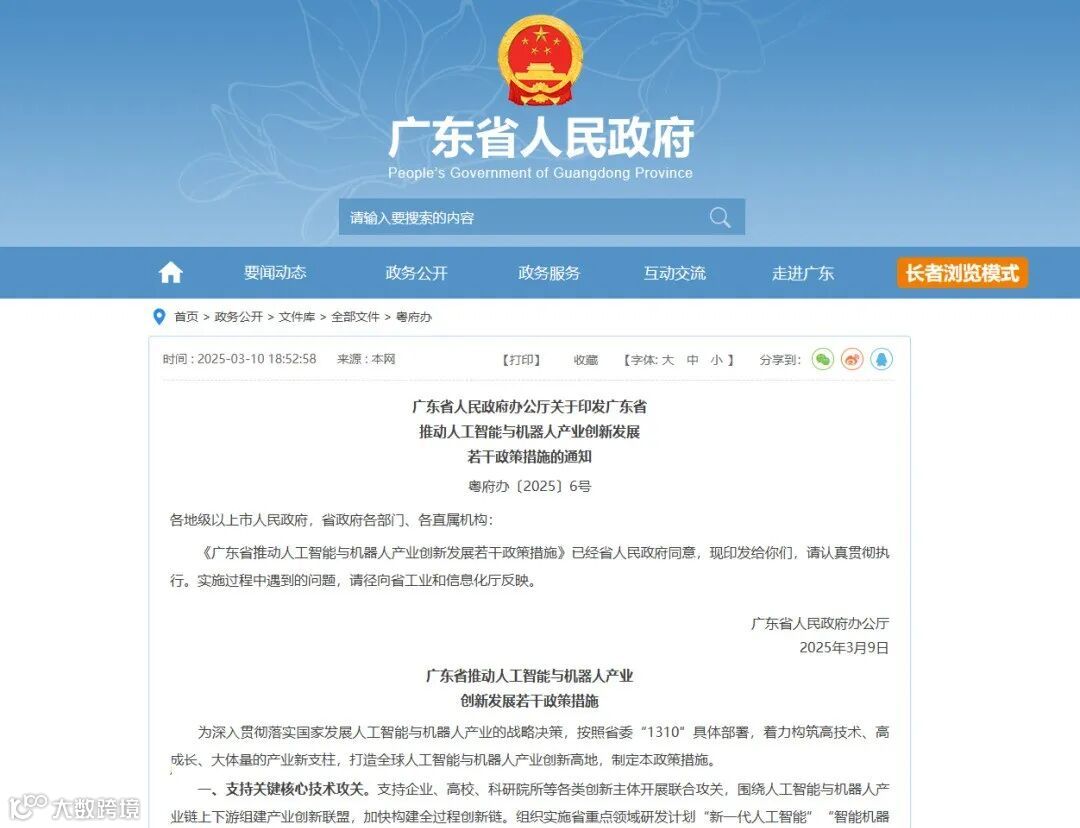 3月10日,《广东省推动人工智能与机器人产业创新发展若干政策措施》正式发布。其中提出,围绕人工智能与机器人领域,面向工业制造、特种作业等产业深挖应用场景,打造具有国际影响力的会议与交流活动等。