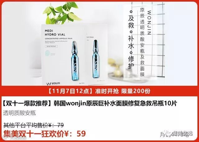 当红女星林允推荐,时尚达人都在用的韩国wonjin原辰透明质酸面膜,含多种维他命和高分子补水安瓶精华,超纤薄面膜材质,医用灭菌材质。触感柔软,轻薄透气促进肌肤吸收。用6项透明质酸成分为肌肤补充水分的紧急配方!透明如蚕丝的补水面膜,贴合每一寸毛孔,让肌肤呈现爆炸般的水润感!