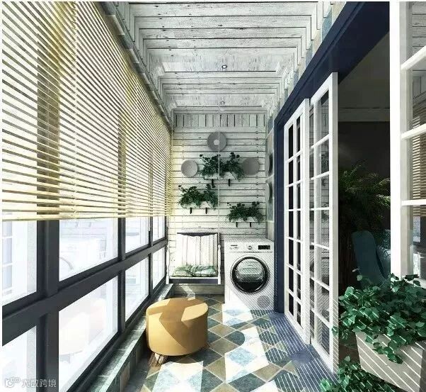 落地玻璃窗为整个阳台空间带来亮度,可以改造为休闲健身区、观赏晾晒区”三区一体,可以沐浴阳光,在室内健身锻炼,给生活增添一份悠闲自得的情趣。