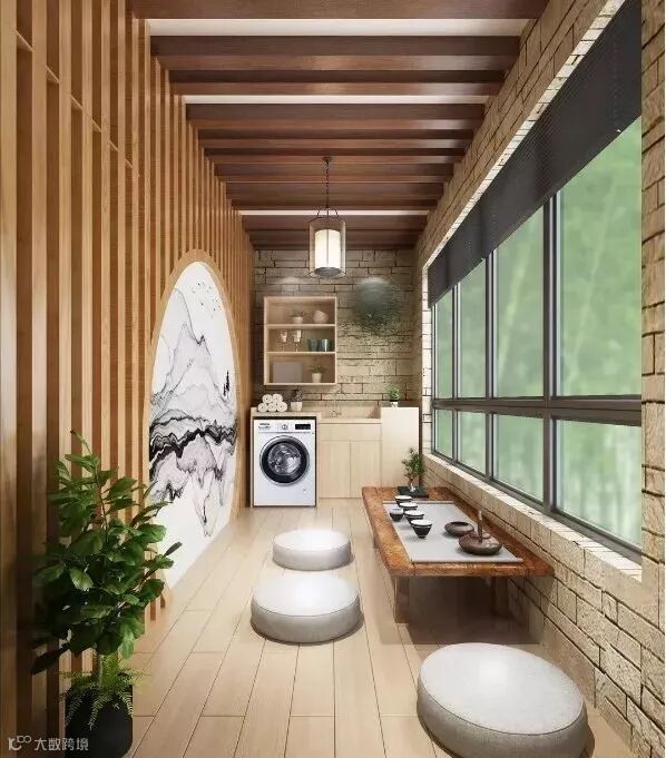 一墙之隔,便从繁华都市来到现代隐者的心灵幽居。除了洗衣,它更是一个小茶室。一边观景品茶道,一边与密友谈心。