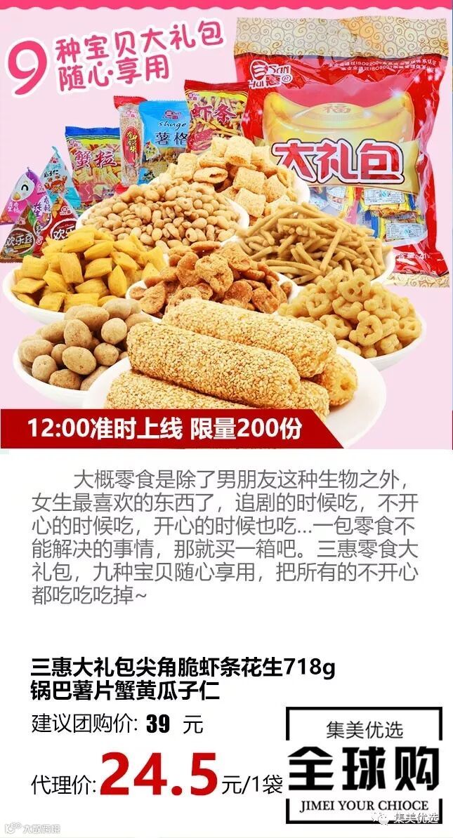 大概零食是除了男朋友这种生物之外,女生最喜欢的东西了,追剧的时候吃,不开心的时候吃,开心的时候也吃…一包零食不能解决的事情,那就买一箱吧。三惠零食大礼包,九种宝贝随心享用,把所有的不开心都吃吃吃掉~
