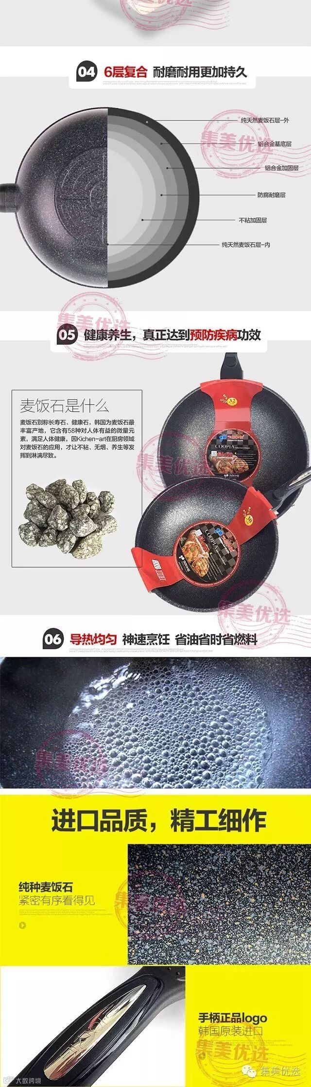 5.麦饭石锅方便单手操作,锅体超轻,玩商伙伴称过,不到2斤!而且热的快,这对于烧电磁炉和力气小的煮妇来说很重要! ️