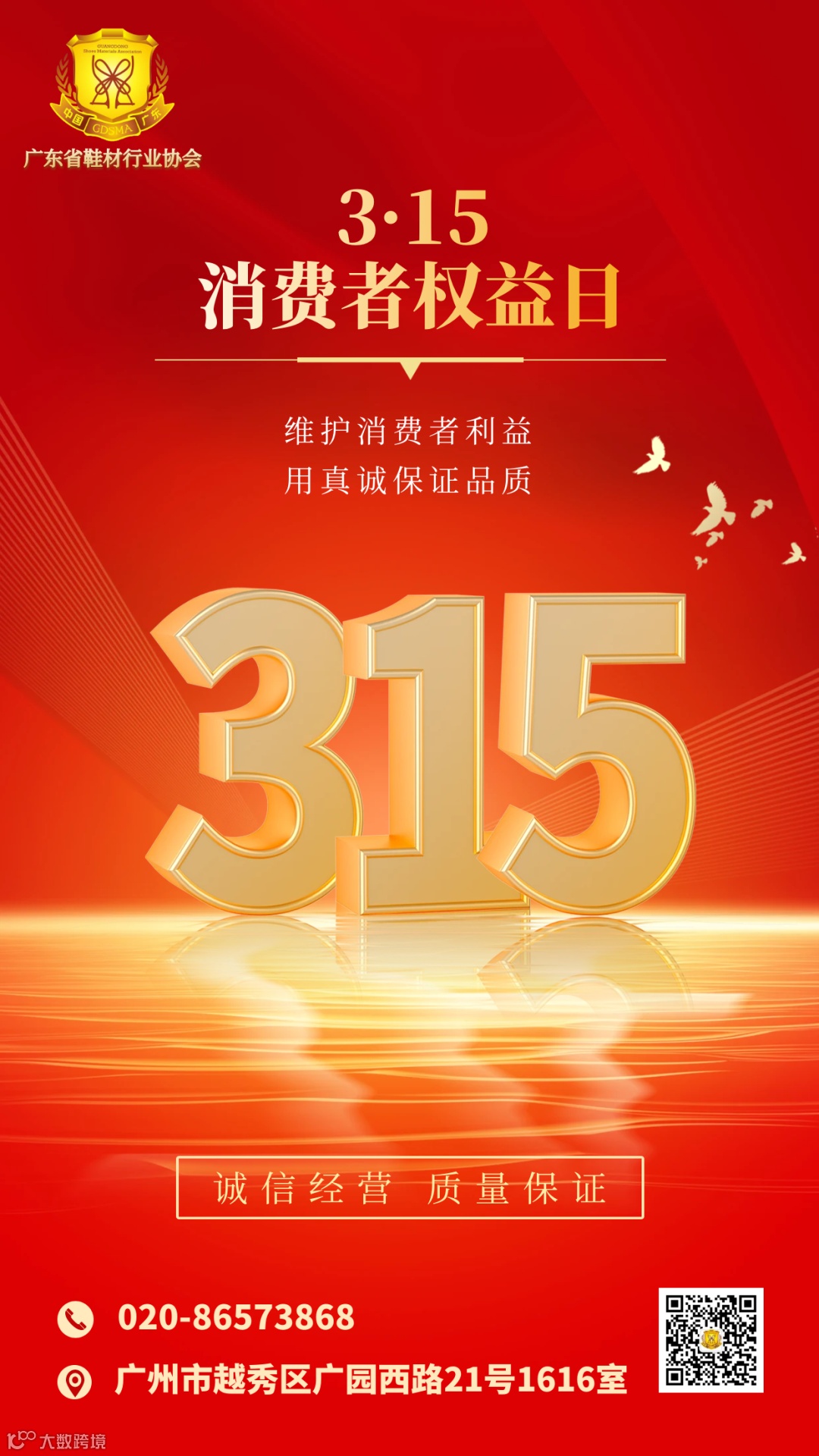 值此“3.15”国际消费者权益日之际,为更好的激发行业消费活力、守护消费权益,优化消费环境。广东省鞋材行业协会自2017年底,连续7年在全行业发起积极签约《广东鞋材行业诚信自律公约》的倡议,诚邀广大会员企业自愿参与,携手鞋材行业协会共同承诺,让诚信成为消费的新风尚!在此,再次向全体会员单位发起315诚信自律经营倡议书: