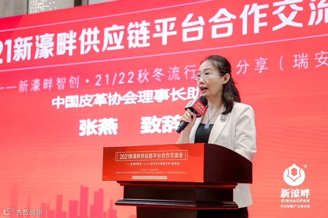 中国皮革协会理事长助理张燕出席会议,张燕女士对皮革行业的发展前景做了展望,并希望制鞋行业各企业之间能够加强跨区合作,开拓更多的销售市场,实现供需双方共赢。