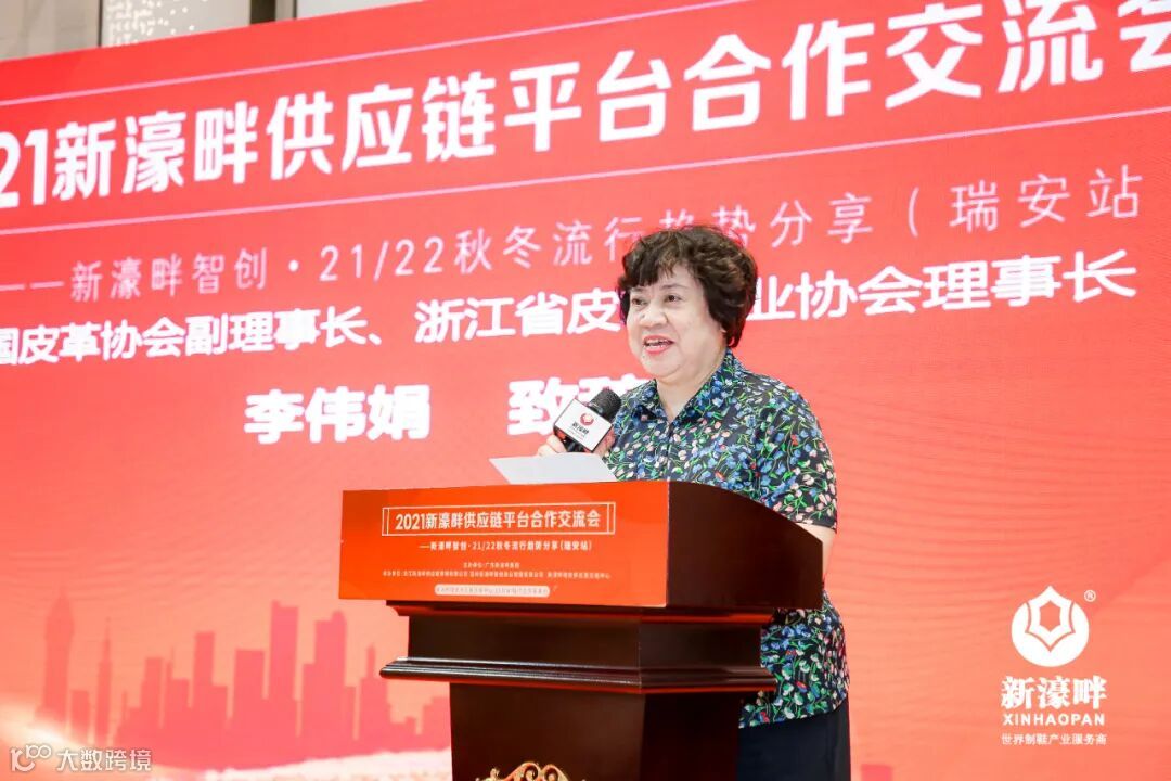 中国皮革协会副理事长、浙江省皮革行业协会理事长李伟娟也发表了讲话,李伟娟女士对制鞋行业目前的现状做了详尽的分析,其中包括瑞安当地制鞋产业的长处与短板,期待新濠畔瑞安供应链交易中心的搭建,能充分利用瑞安制鞋产业与广东鞋材行业的优势,为当地行业提供最优质、最新的制鞋原材料。