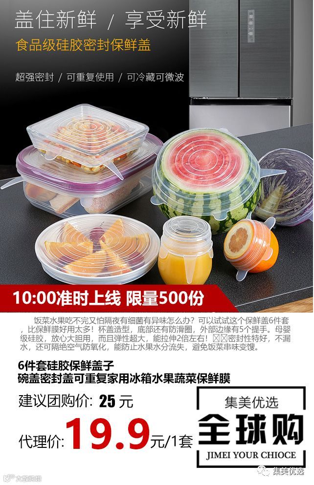 饭菜水果吃不完又怕隔夜有细菌有异味怎么办?可以试试这个保鲜盖6件套,比保鲜膜好用太多!杯盖造型,底部还有防滑圈,外部边缘有5个提手。母婴级硅胶,放心大胆用,而且弹性超大,能拉伸2倍左右!👍👍密封性特好,不漏水,还可隔绝空气防氧化,能防止水果水分流失,避免饭菜串味变馊。😏😏最重要的是,它能重复用,用水冲洗下就变干净!😱