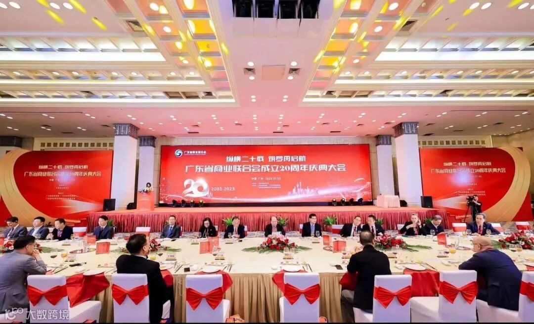广东省贸促会二级巡视员、广东国际商会执行秘书长王宏建先生,广州市贸促会党组成员、副主任张彦,香港特别行政区政府驻粤经济贸易办事处高级协调主任翁志强、黄伟强,澳门贸易投资促进局广州代表处主任钟秀立等领导,以及各兄弟省、市驻穗办事处,有关联盟城市,省各地市商务部门,广东企业界精英,商协会,外国驻穗总领事馆官员和各国商会朋友,共同出席广东省商业联合会成立20周年庆典大会,欢聚一堂。