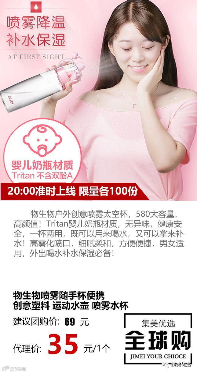 物生物户外创意喷雾太空杯,580大容量,高颜值!Tritan婴儿奶瓶材质,无异味,健康安全,一杯两用,既可以用来喝水,又可以拿来补水!高雾化喷口,细腻柔和,方便便捷,男女适用,外出喝水补水保湿必备!