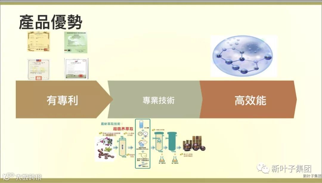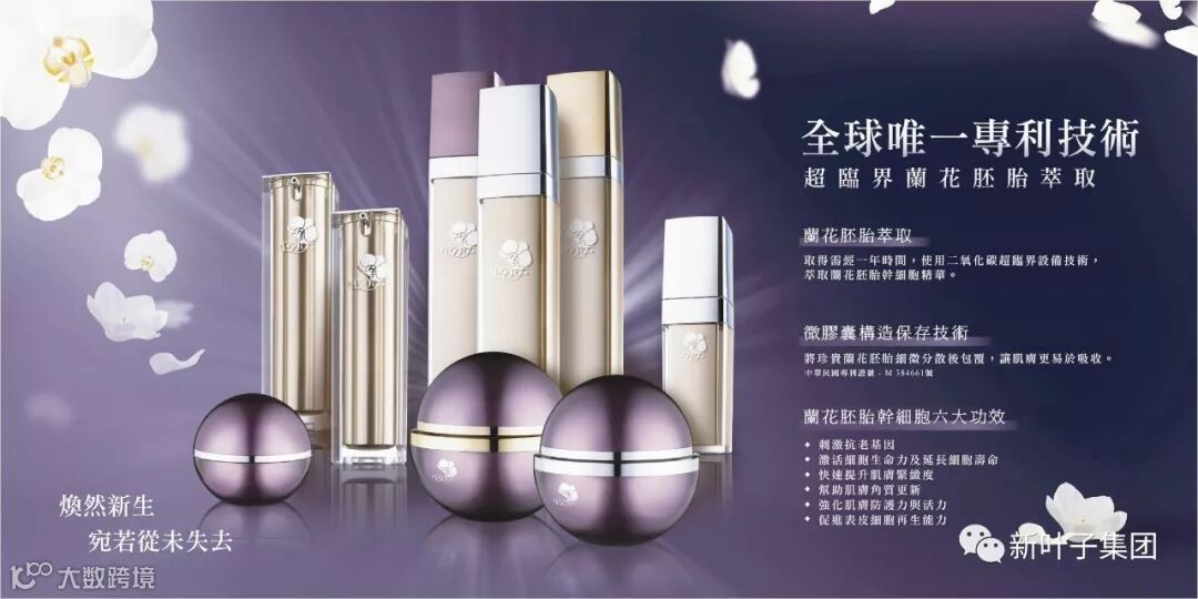 台湾素有兰花王国之称,也是国内外人士都青睐之花卉,而台湾兰花每年产值高达27亿元,產量超过世界60%以上,不论产量和产值均是世界第一,甚至一度超越荷兰,而台湾不仅在兰花培育技术也是世界有名,兰花应用发展科技更是举世无双:新叶子以台湾特有的兰花培育技术与实验室合作,使用颠覆传统生产萃取方式的「超临界萃取」技术,将蝴蝶兰中的胚胎干细胞萃取出来,并配合绿能、无毒、高效之「微胶囊包覆技术」,应用於皮肤保养品中,将惠及全球的爱健康美丽之人士,提供深层次的皮肤维护,更盼卓越技术為爱传承。