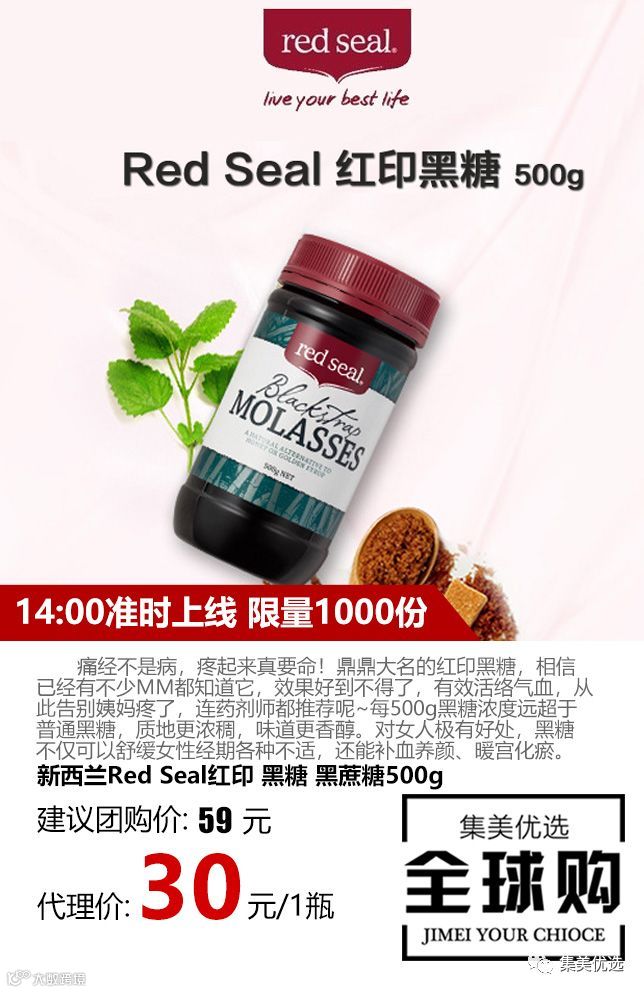 痛经不是病,疼起来真要命!鼎鼎大名的红印黑糖,相信已经有不少MM都知道它,效果好到不得了,有效活络气血,从此告别姨妈疼了,连药剂师都推荐呢~每500g黑糖浓度远超于普通黑糖,质地更浓稠,味道更香醇。对女人极有好处,黑糖不仅可以舒缓女性经期各种不适,还能补血养颜、暖宫化瘀。