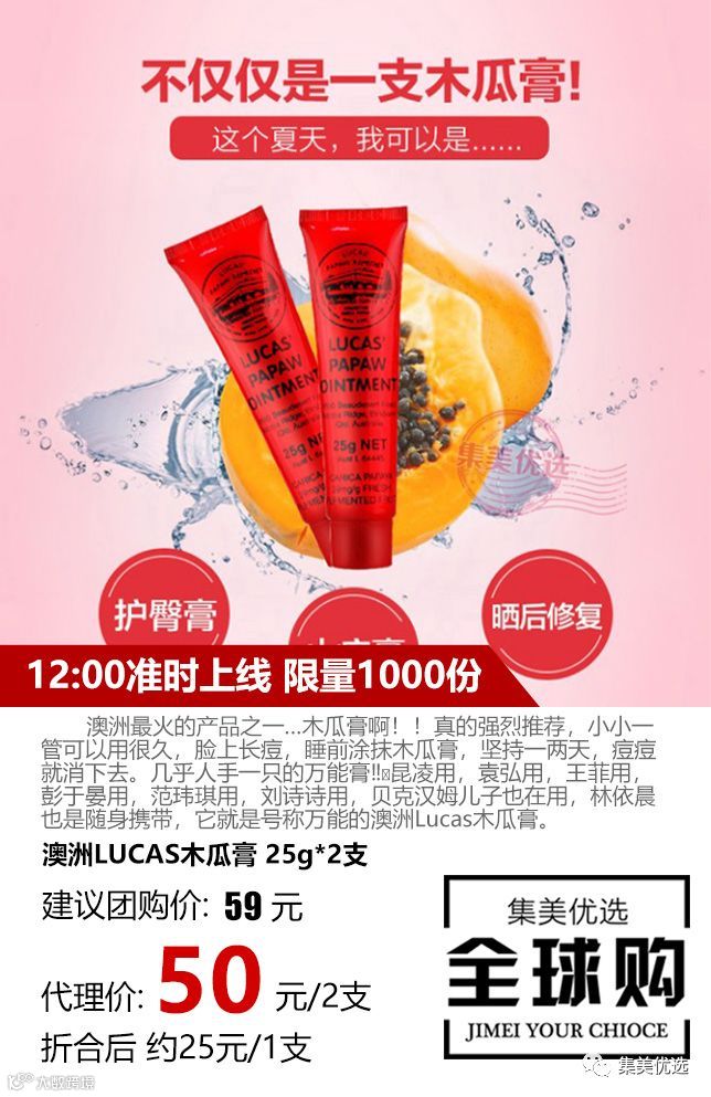 澳洲最火的🔻Lucas万能木瓜膏!!几乎人手一只‼️昆凌用,袁弘用,王菲用,彭于晏用,范玮琪用,刘诗诗用,贝克汉姆儿子也在用,林依晨也是随身携带,小小一管可以用很久,脸上长痘,睡前涂抹木瓜膏,坚持一两天,痘痘就消下去。🔻蚊子咬了抹一下,嘴唇干了抹一下,睡觉起来黑眼圈抹一下,烫伤烧伤抹一下,娃娃湿疹抹一下!一小支超级无敌耐用!