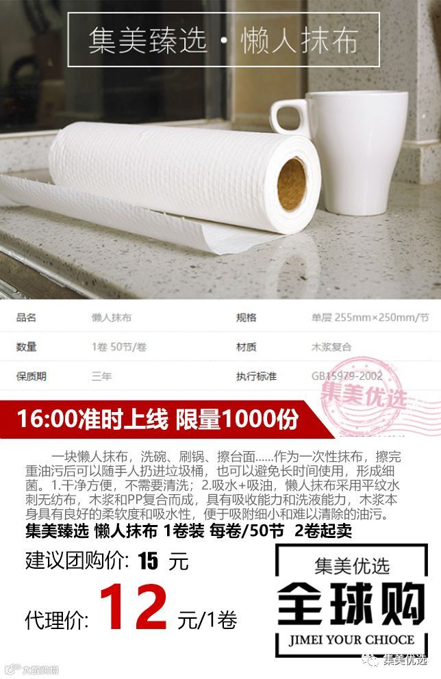一块懒人抹布,洗碗、刷锅、擦台面......作为一次性抹布,擦完重油污后可以随手人扔进垃圾桶,也可以避免长时间使用,形成细菌。1.干净方便,不需要清洗;2.吸水+吸油,懒人抹布采用平纹水刺无纺布,木浆和PP复合而成,具有吸收能力和洗液能力,木浆本身具有良好的柔软度和吸水性,便于吸附细小和难以清除的油污。3.干湿两用,得心应手,懒人抹布,干用、湿用都可以。