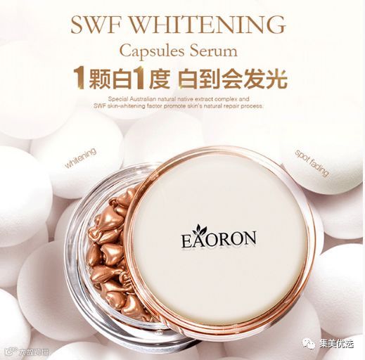 这款号称可以澳洲第一款美白精华胶囊,含有天然的"益肤菌" 成分,从肌肤底部淡化黑色素,同时又具有很好的保湿效果。每天一粒小胶囊,让肌肤在不知不觉中白起来,润起来。EAORON致力于不添加化学成分,敏感肌和孕妇都可以使用。一盒108粒,无菌真空包装,100%锁住活性成分,它的外壳是胶原蛋白制作的。21天能看到效果,想白白白的女士赶紧入手一瓶,美白再也不是梦啦~