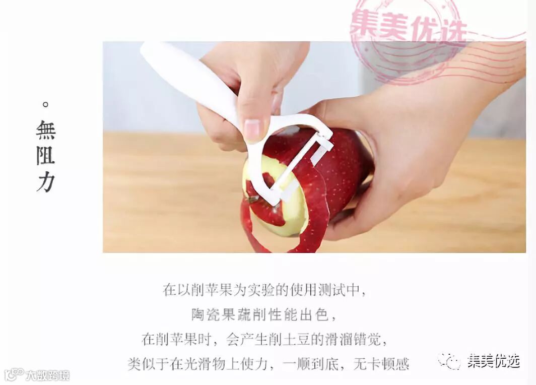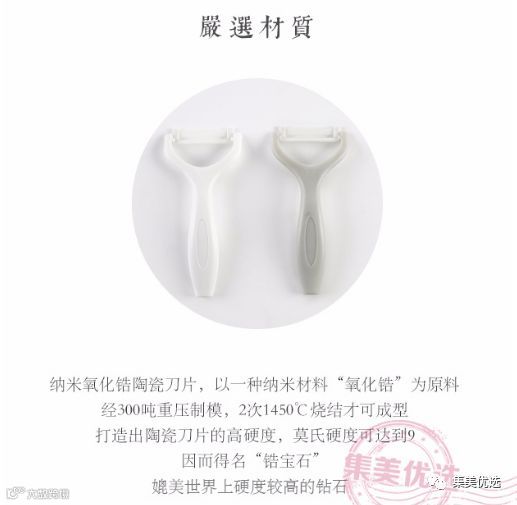 爆款推荐】夏天到了,当然是要多吃蔬果啦~集美臻选 纳米氧化锆 陶瓷果蔬削皮器 柔光白款💠颜值高,陶瓷白很有质感,刀身选用纳米陶瓷材料氧化锆为原料,硬度高,耐磨抗氧化,天然环保,不会生锈,日常不需要特别护理。削蔬果的使用感很好:锋利且握感舒适,一削即净,再也不用担心削蔬果皮麻烦啦~