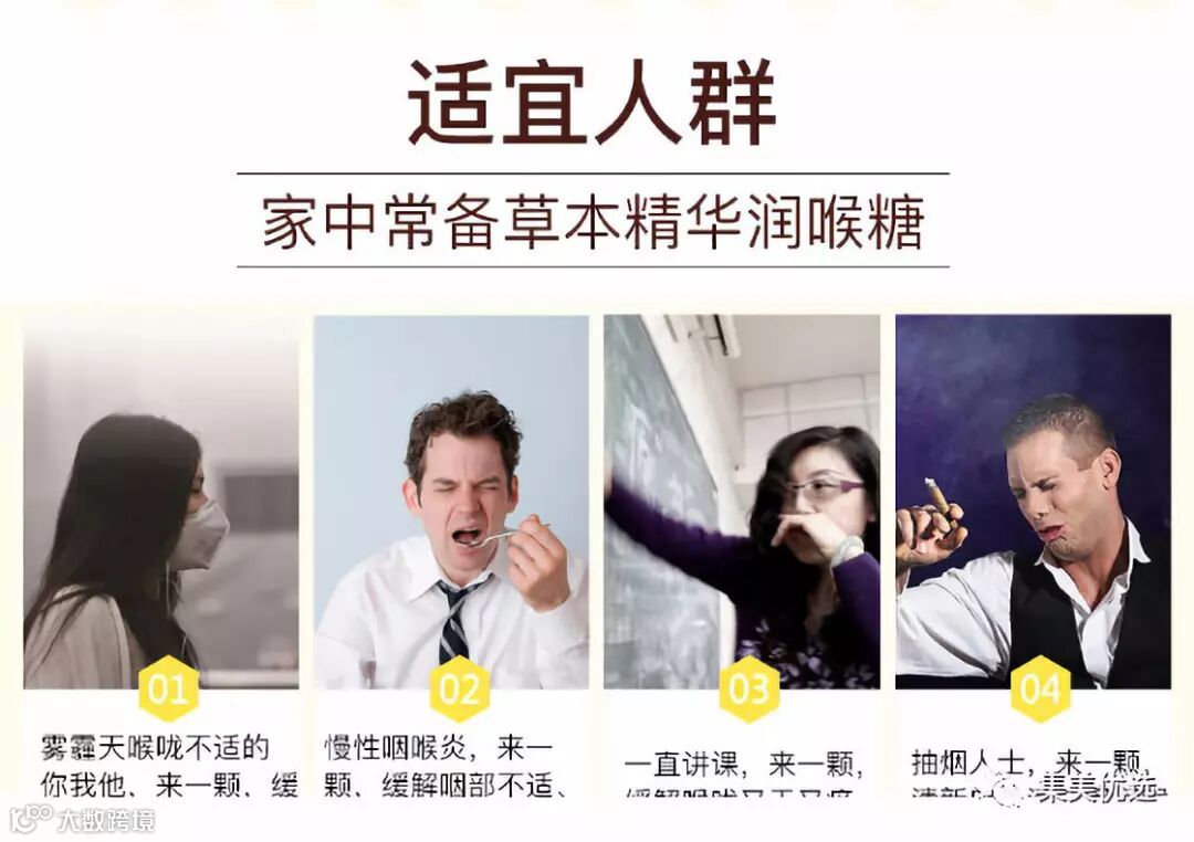 对嗓子不适,吸烟过多,感冒引起的喉咙肿痛,咳嗽不止均有明显的缓和效果。粉末状,不用冲水服用,可直接对着喉咙患处倒入,入口即化,见效快。独立包装的外包装,外出携带方便,随时随地都可以服用。从3岁的小朋友到老人都可以放心服用。