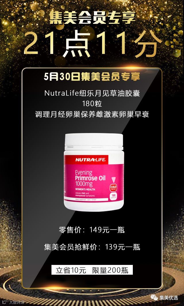 5月30日,21:11,NutraLife纽乐月见草油胶囊180粒调理月经卵巢保养雌激素卵巢早衰,原价149元,建议零售价139元,限量200份,手慢无!!!