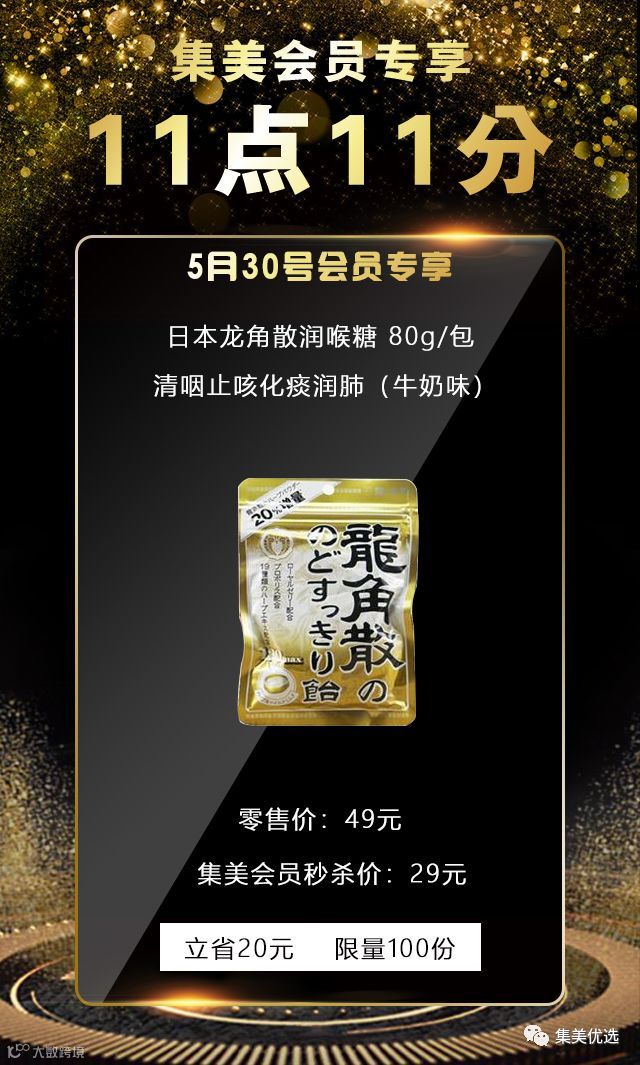 5月30日,11:11,日本龙角散润喉糖 80g/包 清咽止咳化痰润肺,原价49元,建议零售价29元,限量100份手慢无!!!