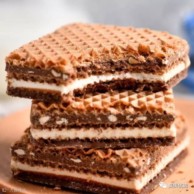 此饼干有五层:巧克力+牛奶层+威化饼+榛仁巧克力酱+威化饼,是相当美味的休闲小零食。一口咬下去,香脆的饼干加上浓郁的巧克力酱,甜而不腻,脆而不散,真是好吃到没朋友。