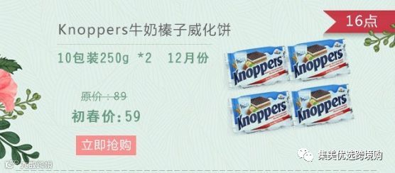 【德国Knoppers牛奶榛子威化饼干】挡不住的5层美味诱惑!近期风靡零食界的德国Knoppers牛奶榛子巧克力威化饼干入战跨境啦!一包一大块超级好吃的威化饼干,香滑的华夫饼,夹上浓郁的巧克力酱,激发出无可停止的美味,快和好友分享吧!