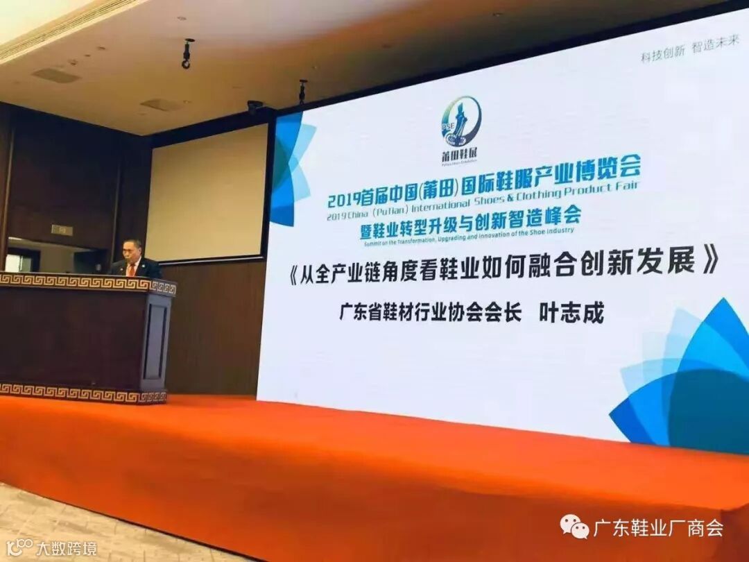 ▲受我会刘穗龙主席委托,我会会长叶志成代表广东鞋业鞋材作重要主题演讲